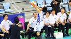 [OSEN=인천, 최규한 기자] 19일 오후 인천 계양체육관에서 'NH농협 2014~2015 V-리그' 남자부 대한항공과 우리카드의 경기가 열렸다. 1세트, 우리카드가 접전 끝에 첫 세트를 따낸 뒤 양진웅 감독대행과 선수들이 환호하고 있다. 대한