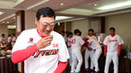 [OSEN=오키나와, 지형준 기자] SK와이번스가 19일 오전 민족대명절 설을 맞아 선수단 합동차례를 지냈다. 김용희 감독이 차례를 마치고 음복을 하고 있다. 미국 플로리다 캠프를 마치고 지난 12일 일본 오키나와 구시가와 구장에