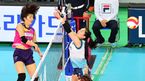 [OSEN=인천, 최규한 기자] 19일 오후 인천 계양체육관에서 'NH농협 2014~2015 V-리그' 여자부 흥국생명과 GS칼텍스의 경기가 열렸다. 흥국생명 치어리더들이 한복을 입고 경기장을 뛰고 있다. 홈팀 흥국생명은 11승13패 승점 33점으로 4