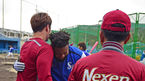 [OSEN=오키나와, 지형준 기자] 24일 삼성 라이온즈의 스프링캠프 장소인 일본 오키나와 온나손 아카마구장에서 삼성과 넥센 히어로즈의 연습경기가 열렸다. 경기에 앞서 넥센 박병호와 삼성 나바로가 인사를 나누고 있다. 삼성