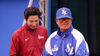 [OSEN=오키나와, 지형준 기자] 24일 삼성 라이온즈의 스프링캠프 장소인 일본 오키나와 온나손 아카마구장에서 삼성과 넥센 히어로즈의 연습경기가 열렸다. 경기에 앞서 넥센 염경엽 감독과 삼성 류중일 감독이 인사를 나누고