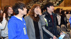 [OSEN=수원, 백승철 기자] 27일 오전 수원시 성균관대학교 수원캠퍼스에서 열린 2015학년도 입학식에서 에이핑크 김남주가 학생들과 어깨동무를 하고 응원가를 부르고 있다. 에이핑크 김남주는 1예체능 특기자 전형으로 15학년도