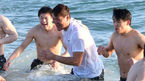 [OSEN=삼척, 김경섭 기자] 27일 오전 강원도 삼척시 증산해수욕장에서 열린 핸드볼 국가대표 남자 대표팀 첫 촌외훈련에서 둘째날 일정에서 김연빈과 윤경신 감독이 입수를 하고 있다. 남자 핸드볼 대표팀이 '젊음', '근성', '스피