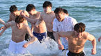 [OSEN=삼척, 김경섭 기자] 27일 오후 강원도 삼척시 증산해수욕장에서 열린 핸드볼 국가대표 남자 대표팀 첫 촌외훈련에서 둘째날 일정에서 감독과 선수들이 입수를 하고 있다. 남자 핸드볼 대표팀이 '젊음', '근성', '스피드' 세