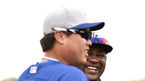 [OSEN=글렌데일(애리조나주), 곽영래 기자] 2일(한국시각) 미국 애리조나주 글렌데일 캐멀벡랜치에서 메이저리그 LA다저스의 스프링 트레이닝이 진행됐다. 매팅리 감독이 이야기를 나누고 있다. 팀훈련에 복귀한 류현진이 동료
