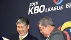 [OSEN=최규한 기자] 3일 오후 서울 도곡동 야구회관에서 'KBO 리그' 타이틀 후원 조인식이 열렸다. 후원사로 선정된 타이어뱅크 김정규 회장과 KBO 구본능 총재가 조인서에 사인을 마친 뒤 기념촬영을 하고 있다. 2015 KBO 리그 타이