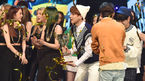 [OSEN=고양, 민경훈 기자] MBC 뮤직 '쇼 챔피언' 생방송이 11일 오후 경기도 고양시 일산 MBC드림센터에서 진행됐다. 포미닛이 이 날 1위를 한 빅스에게 박수를 보내고 있다. 이 날 방송은 베리굿, 연두, 러버소울, 안다, 소나무, 키스,