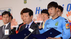 [OSEN=이대선 기자] 5일 오후 서울 서대문구 홍은동 그랜드힐튼호텔서울 그랜드볼룸에서 현대오일뱅크 K리그 클래식 2015 개막 미디어데이가 열렸다. 전북 최강희 감독과 권순태가 축구헌장선서를 하고 있다. 이번 행사에는 각 구
