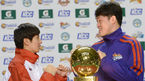 [OSEN=잠실학생체, 김경섭 기자] 6일 오전 서울 잠실학생체육관에서 '2014-2015 KCC 프로농구 플레이오프 미디어데이'가 열렸다. SK 김선형과 전자랜드 정영삼이 포토타임을 갖고 있다. 이날 미디어데이에는 플레이오프에 진출한 6개