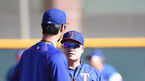[OSEN=서프라이즈 (애리조나주), 곽영래 기자] 7일(한국시각) 미국 애리조나주 서프라이즈 서프라이즈 스타디움에서 텍사스 레인저스와 샌프란시스코 자이언츠의 시범경기가 열렸다. 추신수가 다르빗슈와 이야기를 나누고 있다.