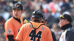 [OSEN=대전,박준형 기자] 8일 오후 대전 한밭구장에서 열린 ‘2015 타이어뱅크 KBO 리그’ 시범경기 한화 이글스와 LG 트윈스의 경기,4회초 1사 1,2루 한화 선발투수 이태양이 교체되고 있다. 이태양은 이날 3⅓이닝 3실점 기록했다.