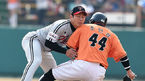 [OSEN=대전,박준형 기자] 8일 오후 대전 한밭구장에서 열린 ‘2015 타이어뱅크 KBO 리그’ 시범경기 한화 이글스와 LG 트윈스의 경기,4회말 1사 1루 한화 정유철의 삼진아웃때 도루 시도한 1루 주자 조인성이 유격수 오지환에게 아웃