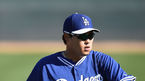[OSEN=글렌데일(애리조나주), 곽영래 기자] 9일(한국시각) 미국 애리조나주 글렌데일 캐멀벡랜치에서 LA 다저스와 밀워키 브루어스의 경기가 진행됐다. 류현진이 캐치볼을 마친 뒤 몸 상태를 체크하고 있다. 류현진은 지난 8일 라