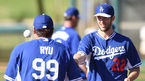 [OSEN=글렌데일(애리조나주), 곽영래 기자] 9일(한국시각) 미국 애리조나주 글렌데일 캐멀벡랜치에서 LA 다저스와 밀워키 브루어스의 경기가 진행됐다. 류현진이 동료들과 장난을 치고 있다./ youngrae@osen.co.kr