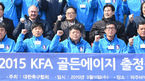 [OSEN=파주, 김경섭 기자] 11일 오전 경기 파주NFC에서 '2015 KFA 골든에이지 출정식'행사가 열렸다. 출정식 행사에서 포토타임을 갖고 있다. 대한축구협회의 한국형 유소년 육성프로그램 '골든에이지'는 팀승리를 위한 훈련 및 경기