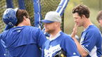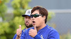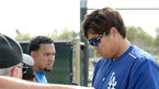[OSEN=글렌데일(애리조나주), 곽영래 기자] 12일(한국시각) 미국 애리조나주 글렌데일 캐멀벡랜치에서 LA 다저스 스프링 캠프가 진행됐다. 번트 훈련을 마친 류현진이 장난을 치고 있다. 류현진은 지난 8일 라이브 배팅에서 투구