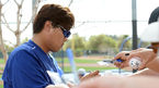 [OSEN=글렌데일(애리조나주), 곽영래 기자] 12일(한국시각) 미국 애리조나주 글렌데일 캐멀벡랜치에서 LA 다저스 스프링 캠프가 진행됐다. 훈련을 마친 류현진이 팬들에게 사인을 해주고 있다. 류현진은 지난 8일 라이브 배팅에서