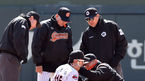 [OSEN=부산, 민경훈 기자] 12일 오후 부산 사직구장서 ‘2015 타이어뱅크 KBO 리그’ 시범경기 롯데 자이언츠와 kt 위즈의 경기가 열렸다. 1회초 1사 kt 김진곤의 타구가 롯데 2루수 강동수를 맞고 안타가 된 후 강동수가 치료를 받고