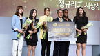 [OSEN=이대선 기자] 12일 오전 여의도 63컨벤션센터 그랜드볼룸에서 KB국민은행 2014~2015 여자프로농구 정규리그 시상식이 열렸다. 베스트5상을 수상한 우리은행 박혜진, 국민은행 홍아란, 신한은행 김단비, 신한은행 크리스마스,