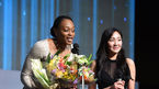 [OSEN=이대선 기자] 12일 오전 여의도 63컨벤션센터 그랜드볼룸에서 KB국민은행 2014~2015 여자프로농구 정규리그 시상식이 열렸다. 외국인선수상을 수상한 우리은행 샤데 휴스턴이 수상소감을 말하고 있다. 시상 내역은 투표에 의