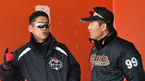 [OSEN=부산, 민경훈 기자] 12일 오후 부산 사직구장서 ‘2015 타이어뱅크 KBO 리그’ 시범경기 롯데 자이언츠와 kt 위즈의 경기가 열릴 예정인 가운데 양팀 훈련시간에 kt 조범현 감독과 롯데 이종운 감독이 kt 덕아웃에 나와 얘기를