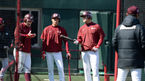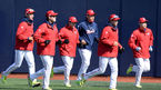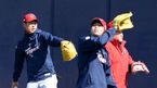 [OSEN=목동, 지형준 기자] 12일 오후 서울 목동야구장에서 '2015 타이어뱅크 KBO 리그 시범경기' 넥센 히어로즈와 KIA 타이거즈의 경기가 열렸다. 넥센 서건창, 유재신, 박병호가 타격 훈련을 하며 이야기를 나누고 있다. 한편 신생구