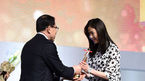 [OSEN=이대선 기자] 12일 오전 여의도 63컨벤션센터 그랜드볼룸에서 KB국민은행 2014~2015 여자프로농구 정규리그 시상식이 열렸다. 식스우먼상을 수상한 신한은행 김규희가 트로피를 받고 있다. 시상 내역은 투표에 의한 시상으로