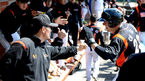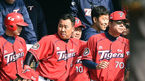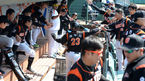 [OSEN=잠실,박준형 기자] 19일 오후 서울 잠실구장에서 열린 '2015 KBO리그 시범경기' 두산 베어스와 KIA 타이거즈의 경기,7회초 1사 1,3루 KIA 이범호가 역전 희생플라이를 날리고 동료들의 축하를 받고 있다 두산은 4승1무3패. KIA는 3