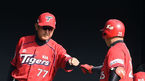 [OSEN=잠실,박준형 기자] 19일 오후 서울 잠실구장에서 열린 '2015 KBO리그 시범경기' 두산 베어스와 KIA 타이거즈의 경기,7회초 1사 1,3루 KIA 이범호가 역전 희생플라이를 날린뒤 김기태 감독과 하이파이브를 하고 있다. 두산은 4승1