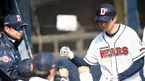 [OSEN=잠실,박준형 기자] 19일 오후 서울 잠실구장에서 열린 '2015 KBO리그 시범경기' 두산 베어스와 KIA 타이거즈의 경기, 7회말 2사 두산 정진호가 동점 솔로홈런을 날리고 김태형 감독과 하이파이브를 하고 있다. 두산은 4승1무3패.