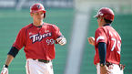 [OSEN=잠실,박준형 기자] 19일 오후 서울 잠실구장에서 열린 '2015 KBO리그 시범경기' 두산 베어스와 KIA 타이거즈의 경기,7회초 KIA 선두타자 브랫 필이 안타를 날리고 김태룡 코치와 하이파이브를 하고 있다. 두산은 4승1무3패. KIA는 3