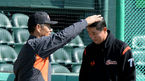 [OSEN=대전, 지형준 기자] 19일 오후 대전 한밭야구장에서 '2015 타이어뱅크 KBO 리그 시범경기' 한화 이글스와 롯데 자이언츠의 경기가 열렸다. 경기에 앞서 한화 김성근 감독이 김회성에 타격 지도를 하고 있다. 신생구단 kt가 합류