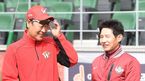 [OSEN=수원, 민경훈 기자] 21일 수원케이티위즈파크에서 열리는 '2015 타이어뱅크 KBO 리그 시범경기' kt 위즈와 KIA 타이거즈의 경기를 앞두고, kt 이광근 수석코치가 KIA 최희섭과 즐겁게 얘기를 나누고 있다. 신생구단 kt가 합류하면
