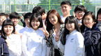 [OSEN=서울월드컵경기장, 이대선 기자] 24일 오전 서울월드컵경기장에서 뉴질랜드 축구 국가대표팀 ‘올 와이츠(All Whites)’와 함께하는 축구클리닉이 진행됐다. 배우 하지원이 기념촬영을 하고 있다. 가평 북중학교 학생을 초청