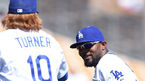 [OSEN=글렌데일(애리조나주), 곽영래 기자] 24일(한국시각) 미국 애리조나주 글렌데일 캐멀벡랜치에서 LA 다저스와 애리조나 다이아몬드백스와의 경기가 열렸다. 다저스 켄드릭과 터너가 3회초 수비를 마친 뒤 이야기를 나누고 있