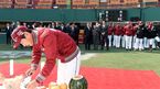 [OSEN=목동, 최규한 기자] 27일 오전 서울 목동야구장에서 넥센 히어로즈의 우승 기원제가 열렸다. 넥센 이택근이 외야에 술을 뿌리며 우승을 기원하고 있다. kt가 합류하며 프로야구 출범 이래 처음으로 10개 구단으로 거행되는 20
