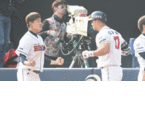 [OSEN=잠실, 김영민 기자] 29일 오후 서울 잠실구장에서 열린 '2015 타이어뱅크 KBO 리그' 두산 베어스와 NC 다이노스의 경기, 7회말 2사 2루 오재원이 투런홈런을 날리고 홈인 민병헌의 축하를 받고 있다. 두산 베어스는 장원준을 NC