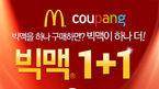 맥도날드 빅맥 1개 값에 2개를 구입할 수 있는 '빅맥 1+1' 행사 진행 총 40만명에게 선착순 제공...4월 14일까지 쿠폰 사용 가능 [OSEN=강필주 기자] 이커머스기업 쿠팡(대표 김범석, www.coupang.com)이 맥도날드와 제휴를 맺고 대표 메뉴
