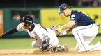 [OSEN=대전, 김경섭 기자] 2일 오후 대전 한화생명이글스파크에서 열린 '2015 타이어뱅크 KBO 리그' 한화 이글스와 두산 베어스의 경기, 5회말 한화 선두타자 최진행이 타격 이후 2루에서 아웃되고 있다. 두산은 기아와 함께 개막 3연