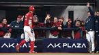 [OSEN=창원, 이상학 기자] NC 이호준이 시즌 1호 마수걸이 홈런을 맛봤다. 이호준은 3일 마산구장에서 열린 2015 타이어뱅크 KBO리그 한화와 홈경기에 6번 지명타자로 선발출장, 5-2로 리드한 7회 2사 1루에서 신인 김민우를 상대로 초