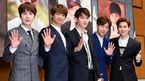 [OSEN=최규한 기자] 규현, 민호, 종현, 성규, 수호가 9일 저녁 서울 여의도 KBS에서 진행된 '두근두근-인도' 제작발표회에 참석해 행사 시작을 기다리고 있다. '두근두근-인도'는 슈퍼주니어 규현, 샤이니 민호, 씨엔블루 종현, 인피