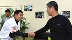 [OSEN=대전, 백승철 기자] 9일 오후 대전시 한화생명 이글스 파크에서 열리는 '2015 타이어뱅크 KBO 리그' 한화 이글스와 LG 트윈스의 경기 시작전 허도환이 김성근 감독과 악수를 나누고 있다. 넥센히어로즈와 한화 이글스는 지난 8