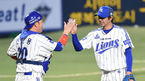 [OSEN=대구, 백승철 기자] 11일 오후 대구시민운동장 야구장에서 열린 '2015 타이어뱅크 KBO 리그' 삼성 라이온즈와 KIA 타이거즈의 경기 종료 후 진갑용과 임창용이 하이파이브를 하고 있다. 삼성 라이온즈가 5연승의 휘파람을 불었