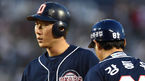 [OSEN=잠실, 김경섭 기자] 11일 오후 서울 잠실야구장에서 열린 2015 타이어뱅크 KBO 리그 LG트윈스와 두산 베어스의 경기, 7회초 2사 주자 1,2루 두산 고영민이 1타점 적시타를 치고 강동우 코치와 기쁨을 나누고 있다. 양 팀의 시즌