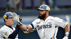 [OSEN=창원, 민경훈 기자] 12일 오후 창원시 마산 야구장서 열린 '2015 타이어뱅크 KBO 리그' NC 다이노스와 SK 와이번스의 경기, 5회말 1사 주자 2루 NC 테임즈가 김광현을 상대로 좌월 투런 홈런을 날린 후 홈에서 전준호 코치와 하이