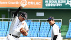 [OSEN=대전, 지형준 기자] 14일 오후 대전 한화생명이글스파크에서 2015 타이어뱅크 KBO리그 한화 이글스와 삼성 라이온즈의 경기가 열렸다. 경기에 앞서 한화 정근우, 이시찬이 수비훈련을 하며 이야기를 나누고 있다. 삼성은 독수