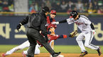 [OSEN=잠실, 김경섭 기자] 15일 오후 서울 잠실야구장에서 열린 '2015 타이어뱅크 KBO 리그' LG 트윈스와 KIA 타이거즈의 경기, 7회말 무사 주자 1루 1루주자 LG 문선재가 2루 도루를 시도하고 있다. 우천취소가 개막전 리매치를 만들었