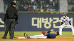 [OSEN=대전, 지형준 기자] 15일 오후 대전 한화생명이글스파크에서 2015 타이어뱅크 KBO리그 한화 이글스와 삼성 라이온즈의 경기가 열렸다. 5회초 2사 1루에서 삼성 박해민이 한화 권용관의 태그에 앞서 2루 도루에 성공하고 있다.