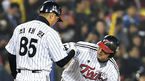 [OSEN=잠실, 김경섭 기자] 15일 오후 서울 잠실야구장에서 열린 '2015 타이어뱅크 KBO 리그' LG 트윈스와 KIA 타이거즈의 경기, 3회말 LG 선두타자 최경철이 3루타를 치고 최태원 코치와 기쁨을 나누고 있다. 우천취소가 개막전 리매치