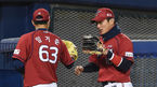 [OSEN=인천, 곽영래 기자] 16일 오후 인천 SK행복드림파크에서 '2015 타이어뱅크 KBO리그' SK 와이번스와 넥센 히어로즈의 경기가 열렸다. 1회초 2사 2루 SK 밴와트가 넥센 박병호의 타구에 맞아 고통스러워 고 있다. 넥센은 1SK전 선발